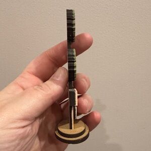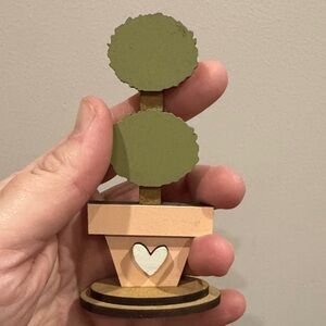 Charming set of three decorative wooden plants. Features green, blue, and brown colors. Perfect for adding a touch of nature to any space.