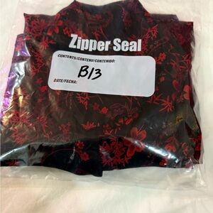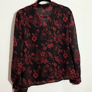 Pariscope women’s black red floral paisley long sleeves button up shirt fairy