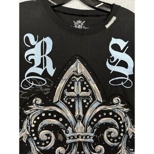 Rebel Spirit XXL Black Graphic T Shirt Royalty Rhinestone Streetwear Graphics