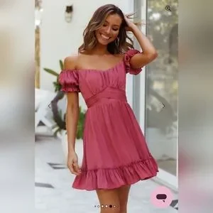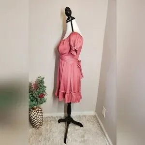 Step out in style with this elegant off-shoulder rose dress. Perfect for any occasion, this dress features a flattering fit and a chic design. Embrace the vibrant pink hue for a standout look.