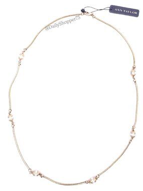 This is a NWT Ann Taylor Antique Gold Necklace with Baguette Cut Glass Rhinestone Beads. This beautiful necklace features an antique gold-toned bead accented with stunning baguette-cut glass rhinestones, and an antique gold-toned chain and findings.