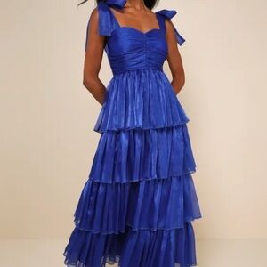 Lulu's Sapphire Blue ruffled Layered Maxi Dress