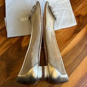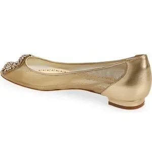 Manolo blahnik Hangisi Chrystal Buckle Gold Mesh Flats, 50th anniversary, NEW