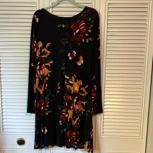 This chic long sleeve dress features a vibrant floral design on a sleek black background. Ideal for any event, it offers both elegance and comfort.