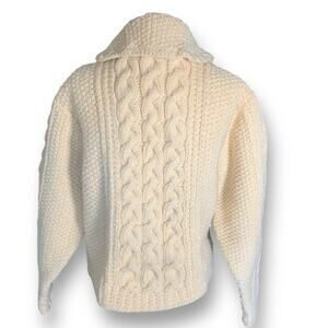 Vintage Hand Knit Chunky Oatmeal Cable Cardigan Sweater Cropped Shawl Collar