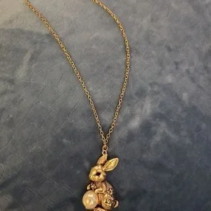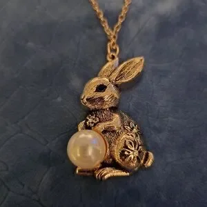 Charming gold bunny pendant necklace with a playful design. Perfect for adding a whimsical touch to any outfit.