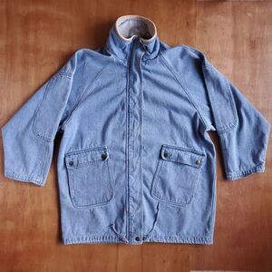 Vintage Denim Chore Barn Coat XL FLAW Cotton Blue Jean Jacket Heavyweight