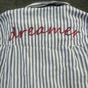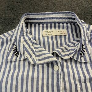 Zara Blue and White Striped Shirt with Embroidery