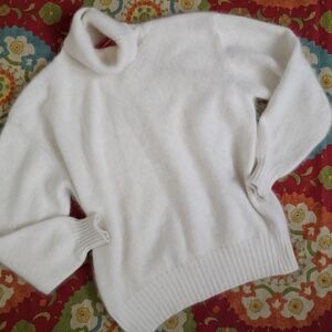 Cream Luxury VTG Angora Wool Blend Turtleneck Softest Sweater Made In Italy