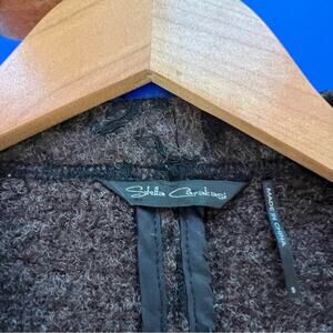 Stella Carakasi Brown Wool Blend Black Lace Wrap Asymmetrical Coat Size Small