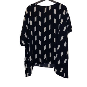 Pre-owned Emery Rose 4XL blouse. Black with a white abstract print. Lightweight almost sheer flattering tunic top. Excellent Condition.