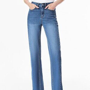 Women's Wide Leg Jeans High Waisted Strechy Raw Hem Zimbaplatinum Denim Pants