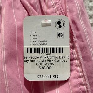 NWT Free People Light Pink Striped Day to Day Boxer Shorts