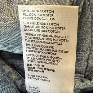 Shell: 100% Cotton. Fill: 100% Polyester. Lining: