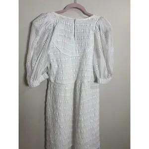 SEA NY White Eyelet Puff Sleeve Smocked Midi Dress
