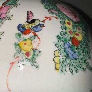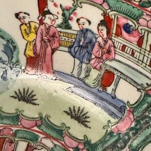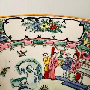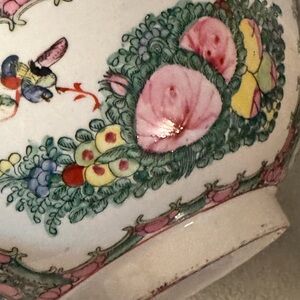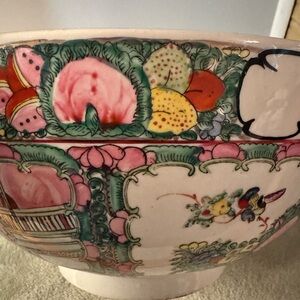 Vintage Chinese Famille Rose Medallion Porcelain Bowl Hand Painted W WOOD STAND