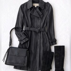 Michael Kors Belted Trench Coat Textured Black Small Classic Double Breasted EUC