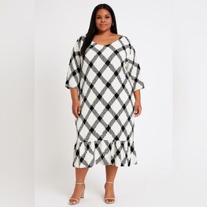 Ashley Stewart Black & White Gingham Ruffle Hem Midi Dress NWT Size 34/36
