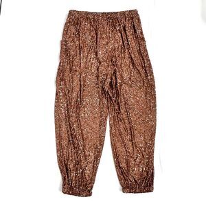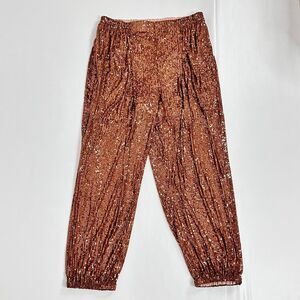 Free People Morelia Sequin Joggers Sz L Boho Glam Whimsy Party Celebration