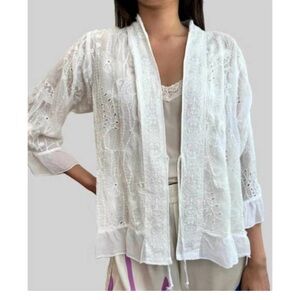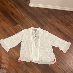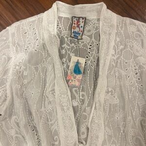 New Johnny Was Women's Ruffle Kimono, White, Top