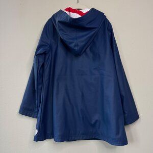 HATLEY Navy Blue Raincoat Girls 8 Waterproof Rain Jacket Red Buttons
