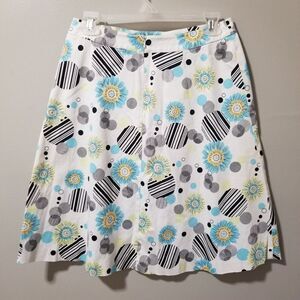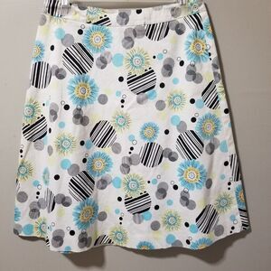Talbots Mid Century Modern A line Skirt Blue White Women's 8P