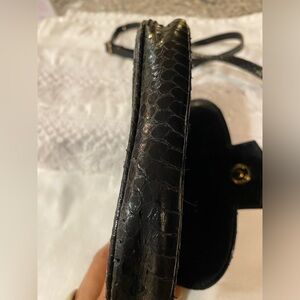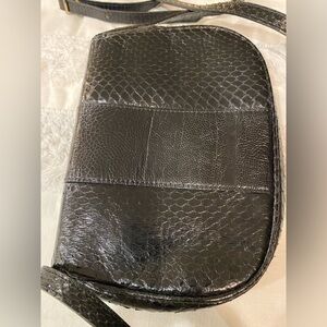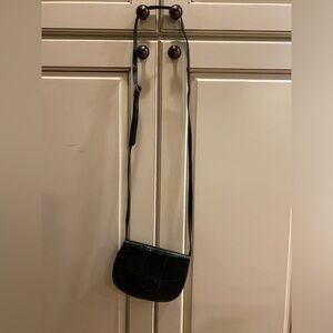 Stylish black crossbody bag with a sleek design. Perfect for any occasion.