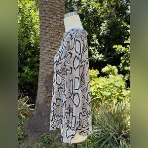 Stylish CAbi top with a bold pattern. Features a flattering neckline and long sleeves. Perfect for any occasion.