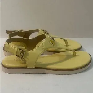 lemon yellow size 8.5 MK sandals featuring a gold MK emblem. Ideal for sunny days. Clean pre owned condition please see photos. No broken straps.