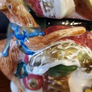 This Fitz & Floyd Forest Festival Santa Cookie Jar is in great condition with only one repair made to the leg of the deer.