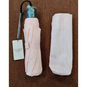 Victoria's Secret Pink Mini Striped Portable Logo Compact Travel Umbrella