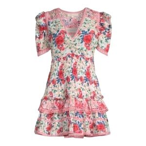 LoveShackFancy Rena Rose Floral Ruffle Mini Dress in Rush of Red Women’s Medium