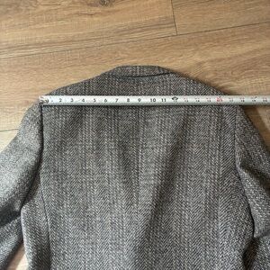 Elevate your style with this classic gray herringbone blazer. Perfect for any occasion, this blazer offers a sophisticated look. In excellent used condition