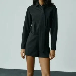 Zara Black Pinstriped Short Jumpsuit Romper Business Casual