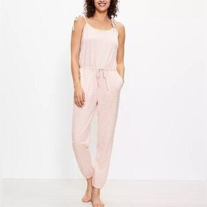 Loft Pink Striped Bow Strap Pajama Romper