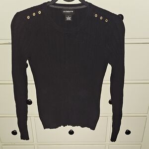EUC. Stylish black long sleeve top. Features gold button details on shoulders. Perfect for any occasion.