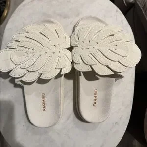 Farm Rio White Monstera Anatomic Slide Sandals Size US 7