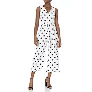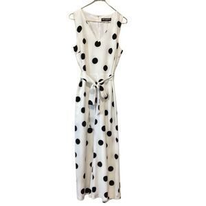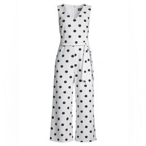 Karl Lagerfeld Paris Cropped Jumpsuit belt White black polka dot Size 12