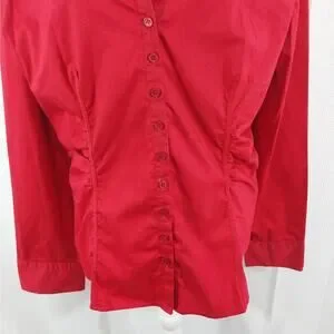 NEW YORK & CO.! ROUGE RED COTTON BLEND JEWELED COLLAR BUTTON FRONT BLOUSE! SZ XL