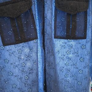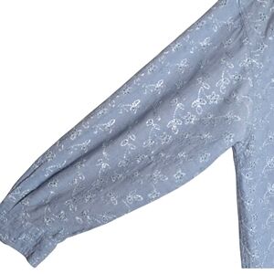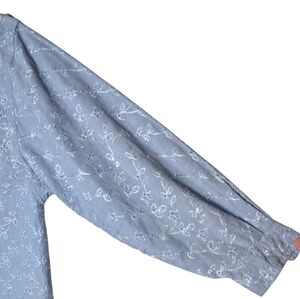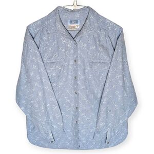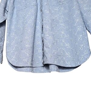 Vintage Chambray Embroidered Eyelet Floral Button-Up Shirt QPS Light Blue Size M