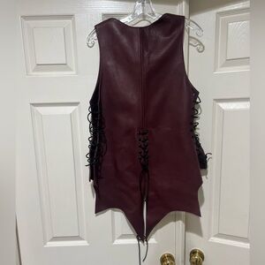 Burgundy women L Leather Lace-Up Corset Vest Gothic Steampunk Biker Victorian