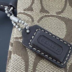 Coach Signature Brown and Tan Wristlet with Coach Hang Tag.Small. EUC