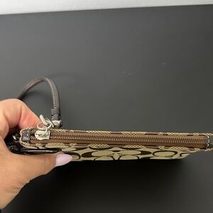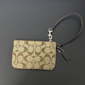 Elegant Coach wristlet with iconic pattern. Comes with a detachable leather strap.