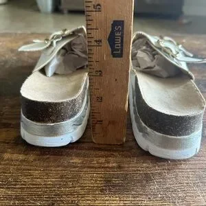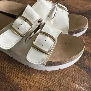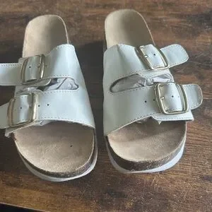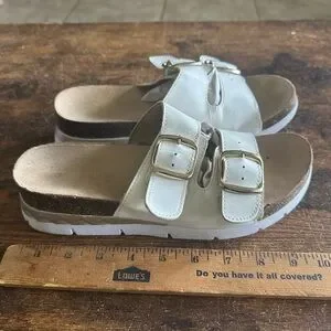 Rialto Womens Farina Sandals 8.5 White Slip On Slides Comfy Cork Wedge Platform