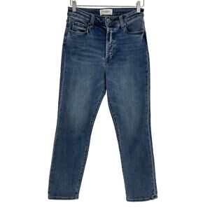 Evereve The Ever Straight Jeans Women Sz 27 Blue High Rise Button Fly Minimalist