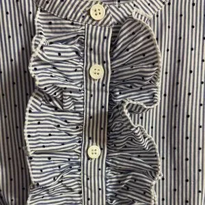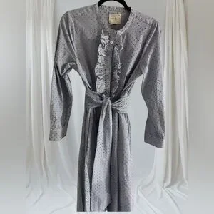 Court & Rowe Ruffle Flocked Dot Pinstripe Long Sleeve 100% Cotton Shirtdress