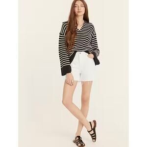 J. Crew High Rise Short White Denim Raw Edge Hem Size 34 NEW