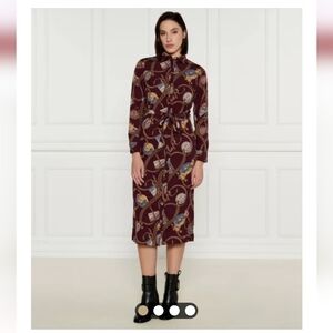 Stylish burgundy dress with a chain print design. Perfect for any occasion.