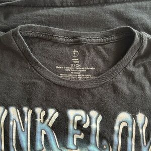 Short sleeve tee with Pink Floyd graphic. Features vibrant design on front.
