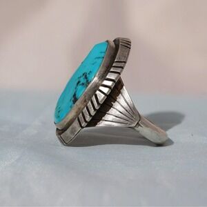 Native American Indian Sterling Silver Large Turquoise Ring - Size 11